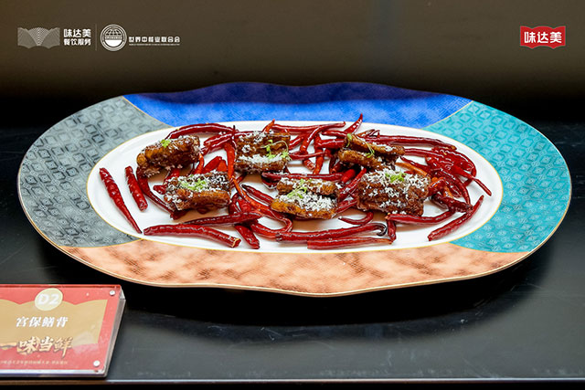 从无锡梁溪脆鳝汲取灵感,以川味宫保汁重新诠释鳝背之鲜。鲜活黄鳝去骨后以葱姜、味达美尚品料酒与少量盐腌制 15 分钟,再以约 80℃ 热水快速汆烫,去除粘液后炸至外酥内嫩。宫保汁以花椒、葱姜蒜打底,加入味达美清香米醋与白糖熬制至“鱼眼泡”状态,酸甜中带微麻微辣,裹上鳝身后脆香交织,形成川味与江南食法的巧妙融合。
