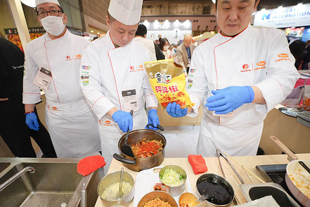 这份坚持,在展会现场通过韩国名厨的演绎,化作了可感知的信任。以黄飞红碎碎椒为核心制作的香酥刀鱼、台式鸡排,让路过的观众停下脚步试吃,并获得好评。